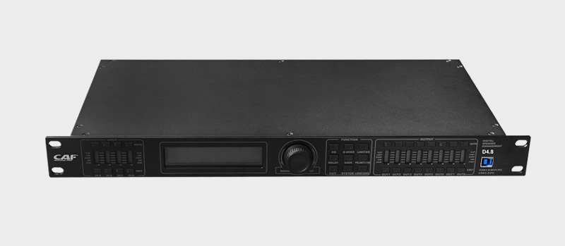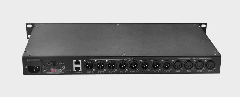 特色: 4輸入8輸出數(shù)字音頻處理器; 96KHz采樣頻率,32bit DSP處理器,24bit A/D及D/A轉(zhuǎn)換; 單機可存儲30種用戶程序;可通過面板來設(shè)定密碼鎖定面板控制功能; 每個輸入和輸出均有6段獨立的參量均衡,同時輸出通道的均衡還可選擇LS和HF兩種斜率方式; LCD藍(lán)色背光顯示功能設(shè)置,8段LED顯示輸入/輸出的*數(shù)字電平表、啞音及編輯狀態(tài);每個輸入和輸出均有延時和相位控制及啞音設(shè)置,延時最長可達(dá)1000ms,延時單位可選擇毫秒、米、英尺三種; 輸出通道還可控制增益、壓限及選擇輸入通道信號,并能將某通道的所有參數(shù)復(fù)制到另外一個通道并能進(jìn)行聯(lián)動控制; 可以通過USB或RS485接口連接PC或中控來控制矩陣和通道的啞音;可以分功能鎖定,實現(xiàn)數(shù)據(jù)保密;輸入通道可調(diào)噪聲門。
