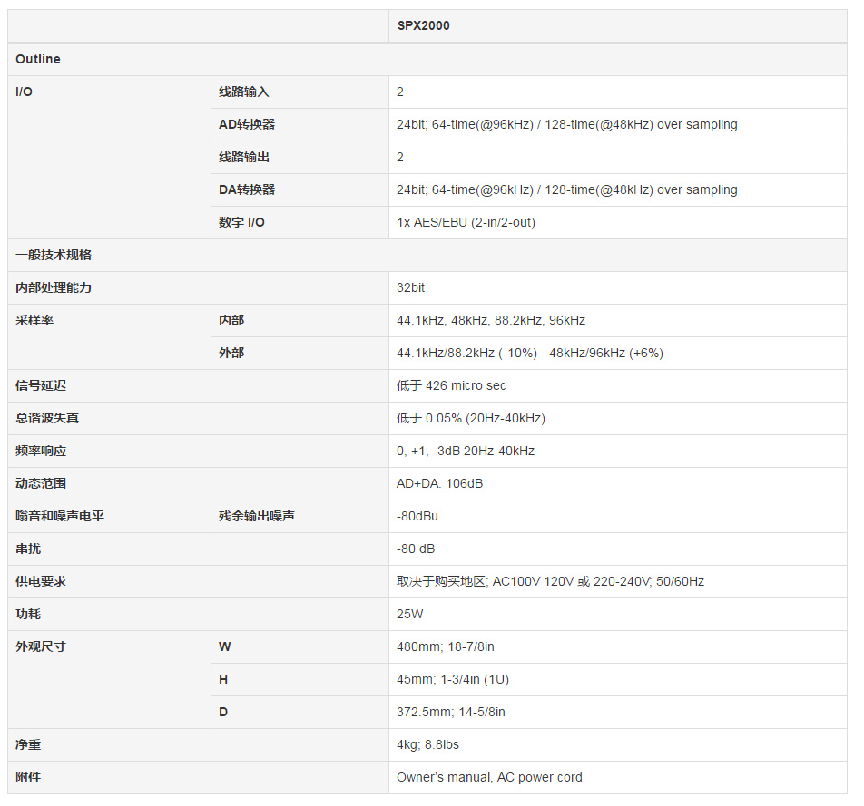 過(guò)去15年中, "SPX"已經(jīng)成為專業(yè)綜合效果器的代名稱。您幾乎可以在任何錄音棚和專業(yè)現(xiàn)場(chǎng)音響系統(tǒng)的機(jī)柜中找到SPX90, SPX90II, SPX900, SPX1000 或SPX990的身影。 SPX2000從它的前輩型號(hào)中繼承了標(biāo)準(zhǔn)的界面和常用效果程序,通過(guò)的REV-X混響算法和高規(guī)格的24-bit、96k-Hz音頻處理能力為SPX聲音帶來(lái)了新的色彩維度 。 它還提供了創(chuàng)新的用戶界面和功能,如5個(gè)可分配LCD背光顏色,操作鎖模式和基于計(jì)算機(jī)的編輯功能。 SPX2000是新一代綜合效果器,是雅馬哈DM 系列數(shù)字制作控制臺(tái)的理想周邊設(shè)備,并適于從現(xiàn)場(chǎng)到錄音棚的所有用途。